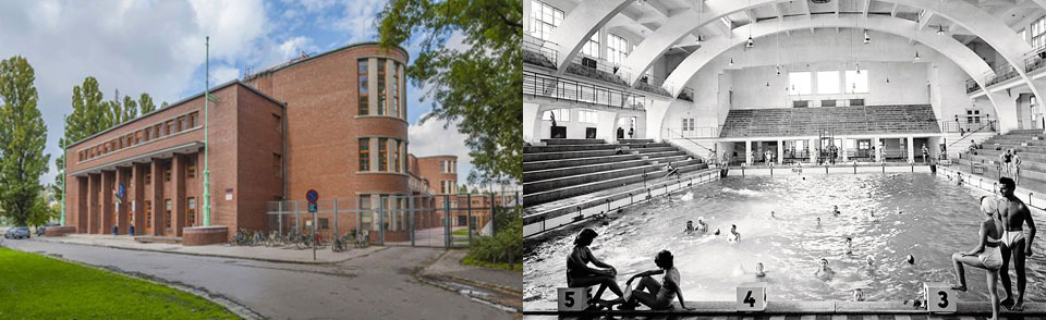 A húszas évektől kezdve egyre népszerűbbé vált a nagy terek építészetében a vasbeton alkalmazása. Ezt nyilvánvalóan felismerte Hajós Alfréd is, ami legismertebb sportépületében, a róla elnevezett Sportuszodában öltött testet. A fedett uszoda vasbeton szerkezete a belépőt fogadó látvány legmeghatározóbb eleme. A medence és a mennyezet között 14 méter a távolság, így impozáns, tágas belső tér született. Mire ehhez az épülethez ért pályáján, Hajós már a szecesszió és az eklektika stílusai után jóval letisztultabb formavilágú, modern épületeket tervezett – haladva a korral, jól ráérezve az építészet legfrissebb változásaira. Az új versenyuszoda külföldön is nagy sikert aratott: a L’Architecutre d’Aujourd’hui részletesen számolt be róla. Az uszodát 1937-ben, majd 2005-2006-ban is bővítették, de a főbejárat ma is az eredeti helyen van. A csarnokot 1999-ben felújították, így ma is fényesen ragyog a fehér falakon a medencék vizének tükörképe.